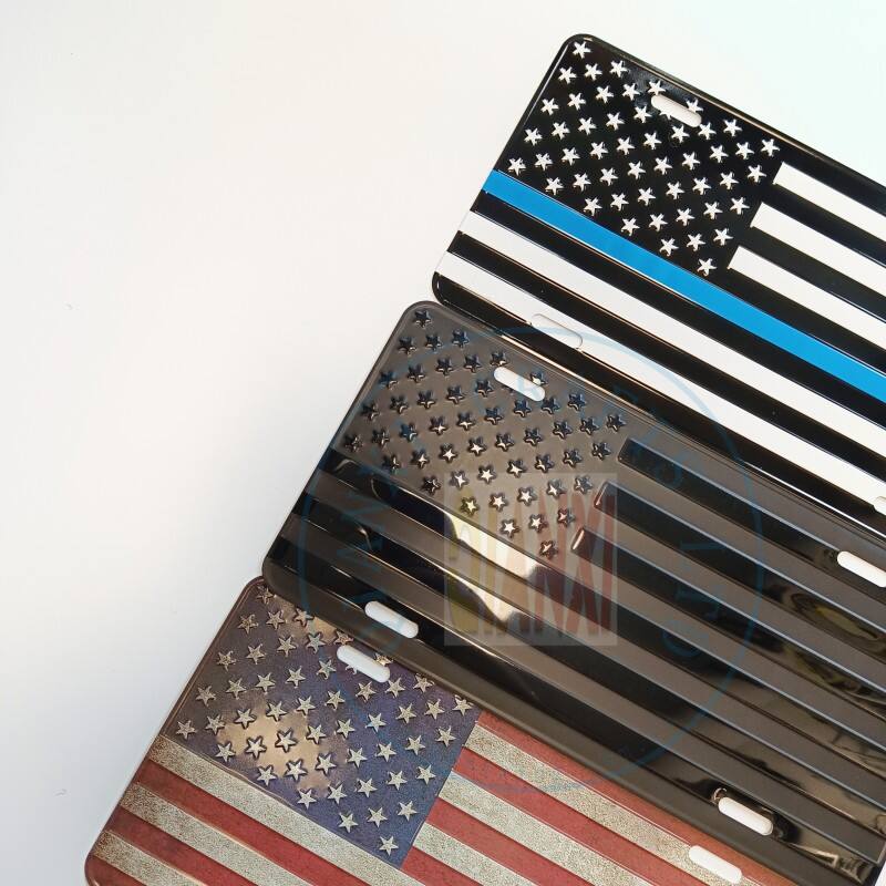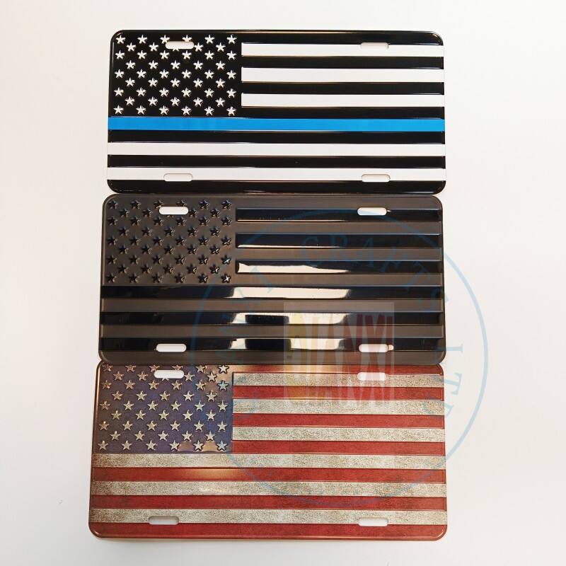 Custom Aluminum Car Number Plate Embossed American Flag Vintage Logo Car License Plate Decoration License Plate Souvenir | Aluminium Nameplates | - Custom OEM/ODM | Hangzhou Qianxi Crafts CO.,Ltd
