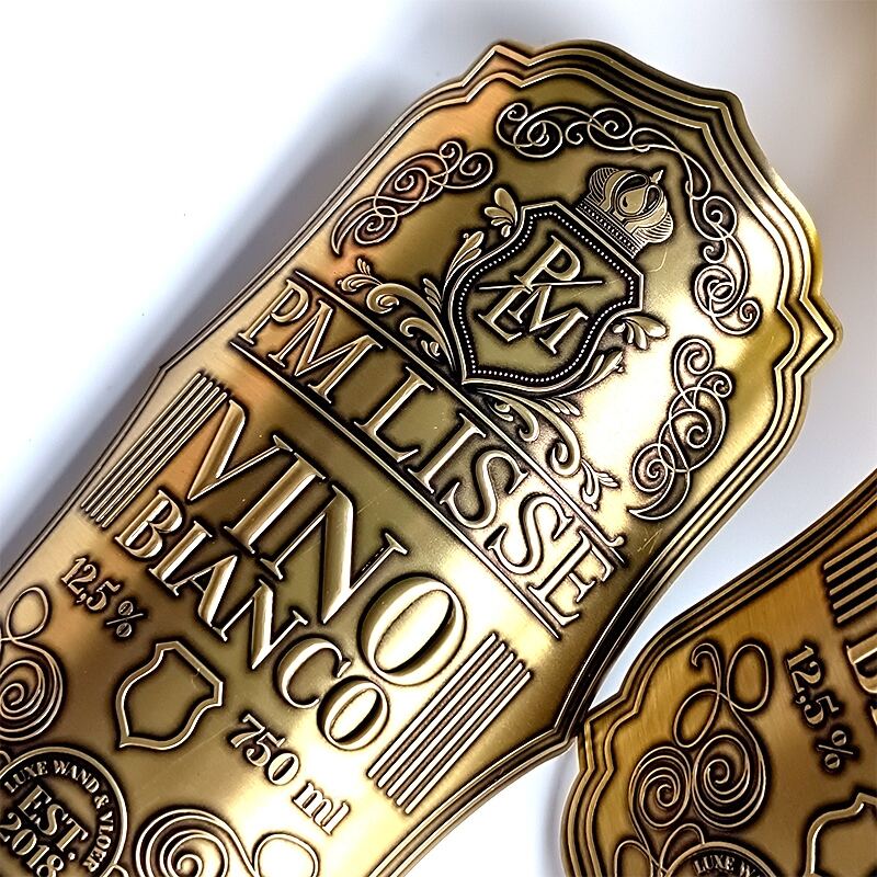 Customized Supplier Sales Printing Metal Wine Bottle Label Embossed Silver Gold Foil Sticker